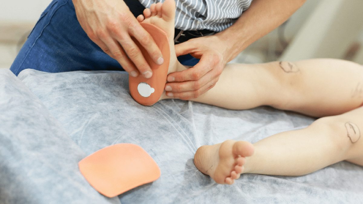 Aufgrund des unvollständigen Verknöcherungsprozesses in Verbindung mit einer hohen Belastung benötigen Kinderfüße unter Umständen zusätzliche Unterstützung. Die einfachste Möglichkeit, eine korrekte Ausrichtung des Schuhwerks zu gewährleisten und den Druck des Körpergewichts auf den Fuß zu verringern, ist die Verwendung spezieller Einlagen. Diabetes, Deformitäten der unteren Gliedmaßen, Klumpfuß und verschiedene Formen von Plattfüßen können Einlagen erforderlich machen. Kinder brauchen Einlagen, die die Altersparameter und alle individuellen Fußmerkmale berücksichtigen. Individuelle Einlagen für Plattfüße werden in der Regel aus einem speziellen thermoplastischen Material hergestellt. Die Unterlage wird auf die erforderliche Temperatur erwärmt und dann an den Fuß des Kindes angepasst.